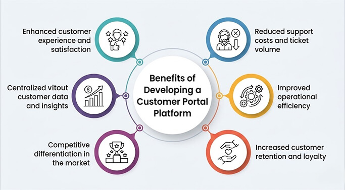 Building a custom customer portal delivers advantages that generic solutions cannot match. Organizations gain complete control over the user experience while addressing specific operational challenges. Here are the key benefits of building a customer portal platform: