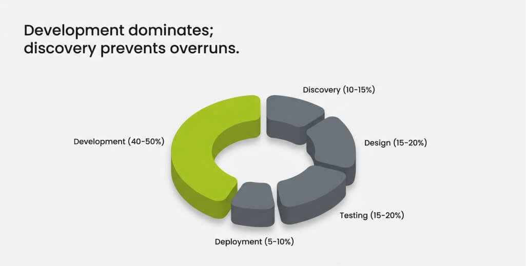 Expect discovery to consume 10% to 15% of the total project budget. This investment prevents much larger expenses from scope changes. Quality discovery deliverables guide all subsequent project decisions.