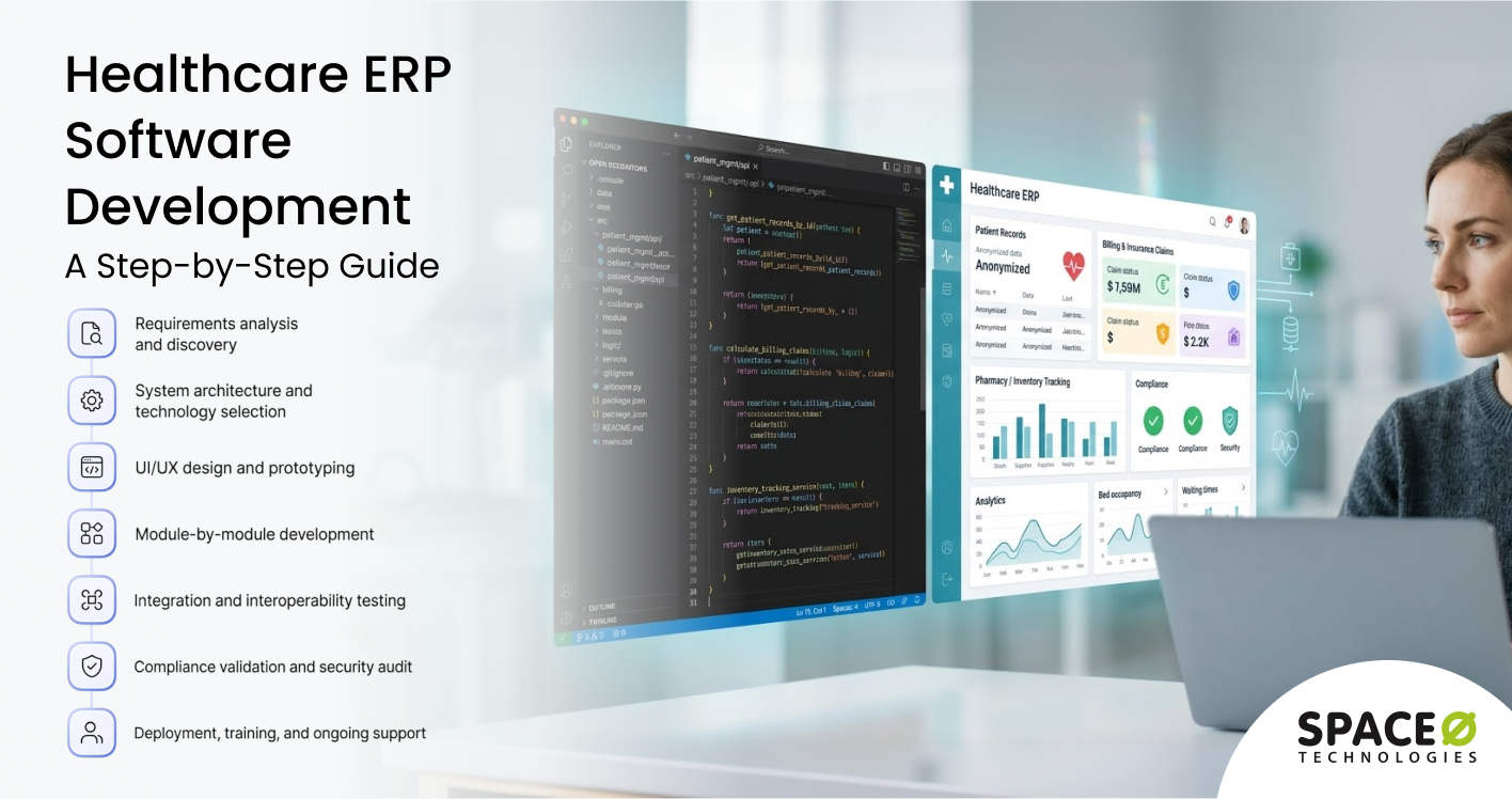 This comprehensive guide covers everything healthcare organizations need to know about healthcare ERP software development. Drawing from our experience as a leading ERP development partner, we share insights on the business benefits of healthcare ERP systems, key features, development process, cost considerations, and possible challenges with their solutions.