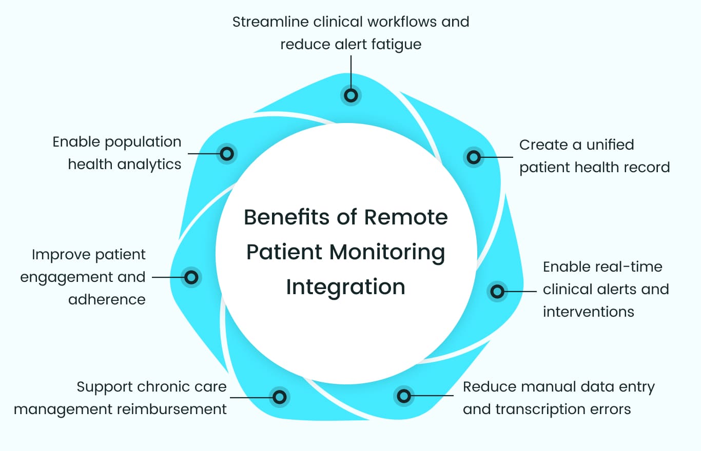 Effective RPM integration enables bidirectional data flow. Patient data flows from devices to clinical systems, while care instructions and feedback flow back to patients. Design an integration architecture to support bidirectional communication from the start.